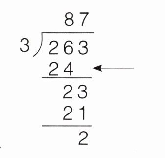 (2)计算$263÷3$的竖式中箭头所指的“24”表示(