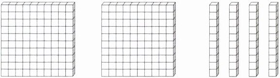 圈一圈:把$2$个百(每$100$个小正方体组成一个大正方体)分别圈在$2$个圈里,每个圈$1$个百;再把$4$个十(每$10$个小正方体组成一条)分别圈在$2$个圈里,每个圈$2$个十。