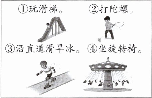 (3)玩跷跷板时,跷跷板围绕中间的固定点做圆周运动,这种运动是旋转现象,而不是平移现象,平移是物体在平面内沿直线移动,所以该说法错误。