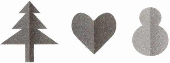 你能像上图这样,将纸对折剪出下面的图形吗?折一折,剪一剪。