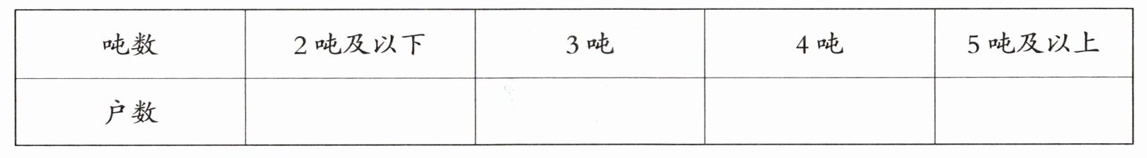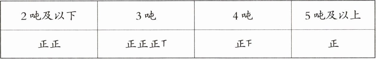 |吨数|2吨及以下|3吨|4吨|5吨及以上|