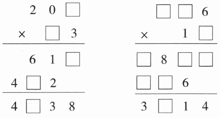 6. 用 0、1、2、3、4 组成三位数乘两位数的乘法算式(每个数字只能用一次),乘积最小的算式是(