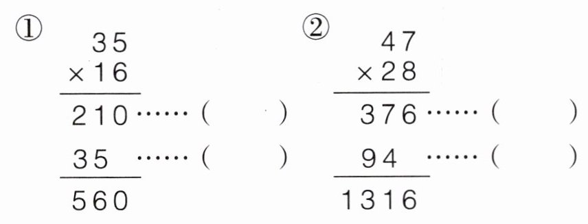 ②$47×8 = 376$,表示$8$个$47$是多少;$47×20 = 940$,表示$20$个$47$是多少;$47×28 = 1316$