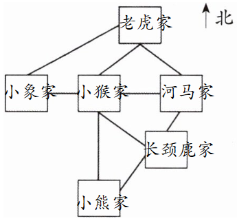 (4)河马家在老虎家的东南方向,河马家的西南方向是长颈鹿家。