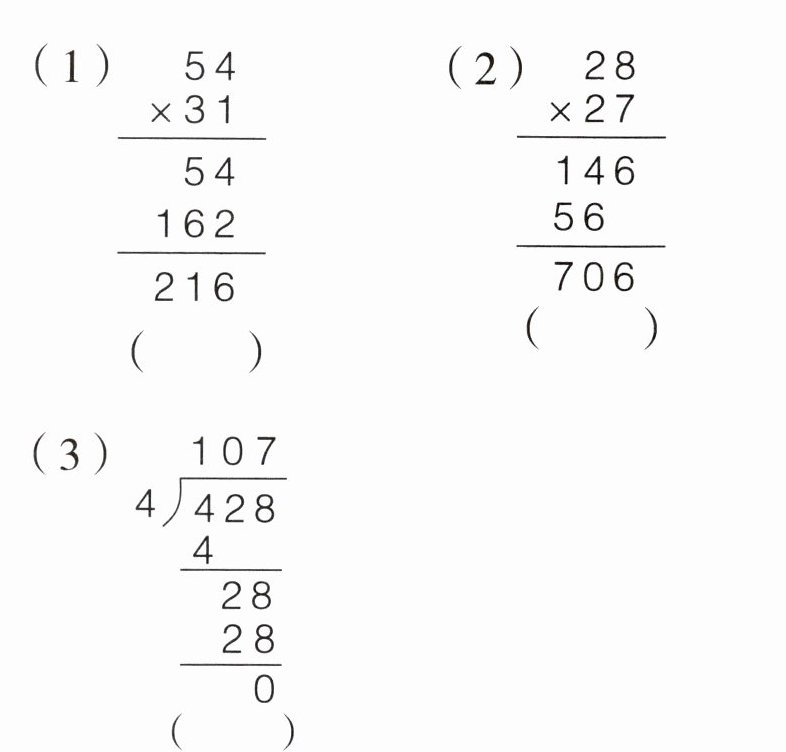 $\begin{array}{r} 54\\ ×31\\ \hline 54\\ 1620\\ \hline 1674\end{array} $