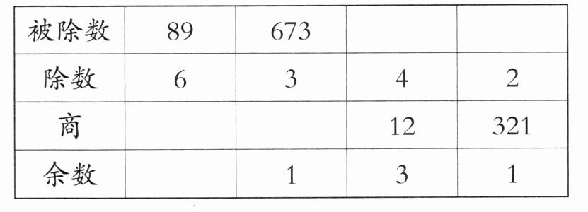 第二列:已知被除数是$673$,除数是$3$,余数是$1$,求商。