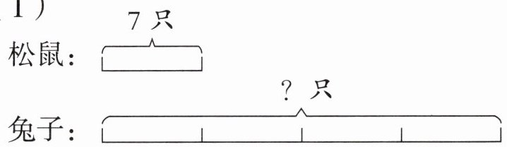 (1) 从图中可知松鼠有$7$只,兔子的数量是松鼠的$4$倍。