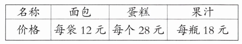 答:买$1$袋面包和$1$个蛋糕一共$40$元。
