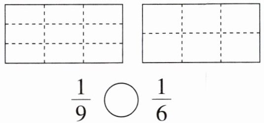 因为平均分的份数越多,每一份越少,所以$\frac{1}{9}<\frac{1}{6}$。