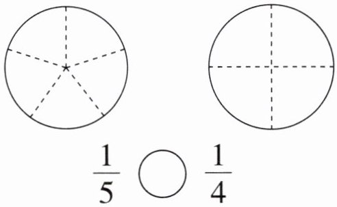 因为平均分的份数越多,每一份越少,所以$\frac{1}{5}<\frac{1}{4}$。