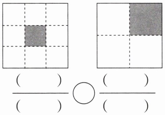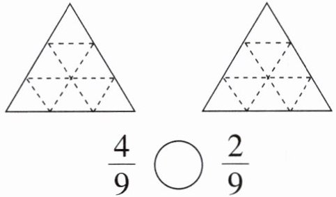 因为平均分的份数相同,涂的份数越多,表示的分数越大,所以$\frac{4}{9}>\frac{2}{9}$。