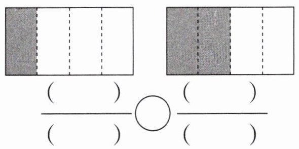 (1)第一个圆被平均分为5份,涂1份表示$\frac{1}{5}$;