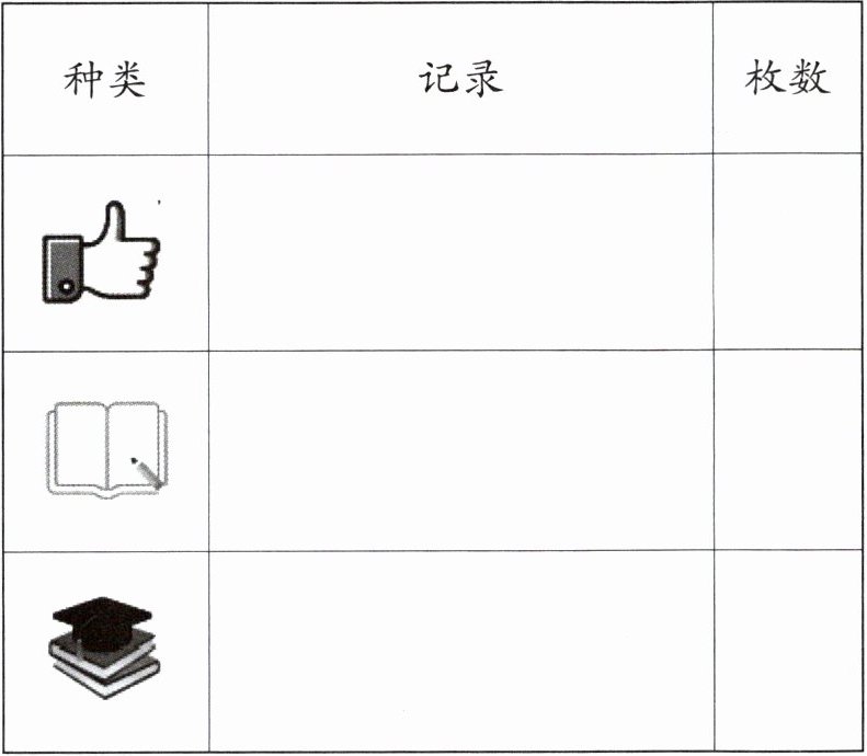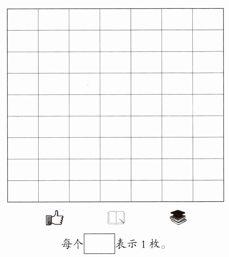 (1)中数据涂方格,👍涂6格,📖涂5格,🎓涂4格,因文本限制无法直接展示涂色)