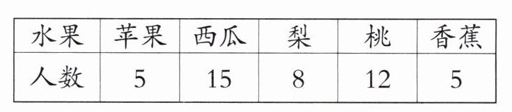 (3)喜欢吃西瓜的人数最多;还能发现喜欢吃苹果和香蕉的人数一样多。