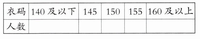 整理数据:将收集到的衣服号码按照$140$及以下、$145$、$150$、$155$、$160$及以上进行分类,然后分别统计每一类的人数。