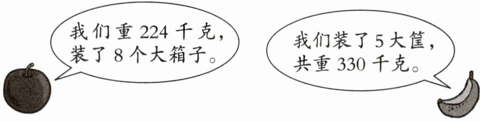 (1)已知$8$个箱子装苹果共$224$千克,用总重量除以箱子数,可得到平均每箱苹果的重量,即$224÷8 = 28$(千克)。