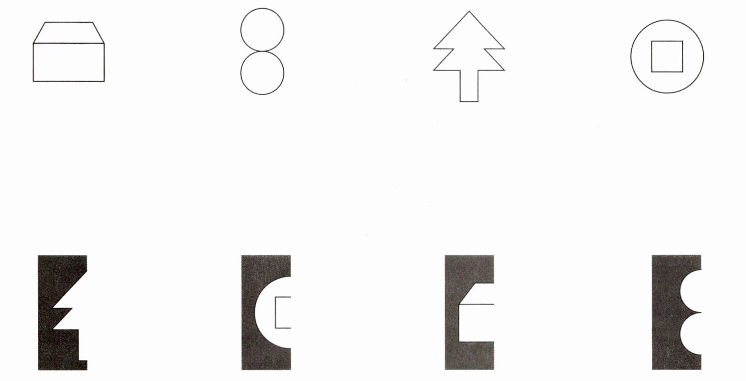 3. 下面的图案各是从哪张纸上剪下来的?你能连一连吗?