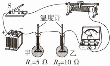 19. 如图是小明探究“影响电流热效应的因素”的实验装置,在甲、乙两瓶中装入质量和初温均相同的煤油$,R_1、$$R_2$采用如图连接方式的目的是
