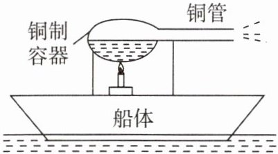 如图是小明制作的简易“蒸汽船”模型.将盛有一定量水的铜制容器安装在“船体”上,用蜡烛对铜制容器底部加热,一段时间后会向右喷蒸汽,“蒸汽船”就向左行驶.