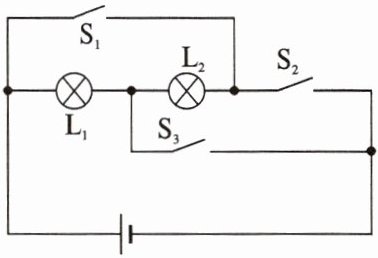 . 当开关 $ S_1 $、$ S_2 $、$ S_3 $ 都闭合,灯泡 $ L_1 $ 的灯丝断了时,灯泡 $ L_1 $ 不发光