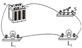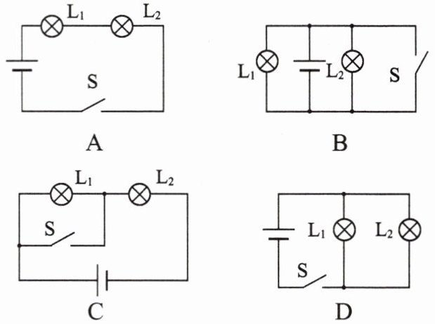 8. 在如图所示的电路中, 当开关 $ S $ 闭合时, 小灯泡 $ L_{1} $ 和 $ L_{2} $ 都工作的是 (