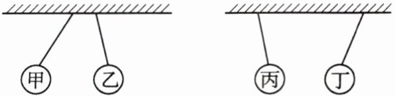 10. 甲、乙、丙、丁 4 个轻质带电小球用细线悬挂起来, 它们之间相互作用的情况如图所示, 则甲、乙带
