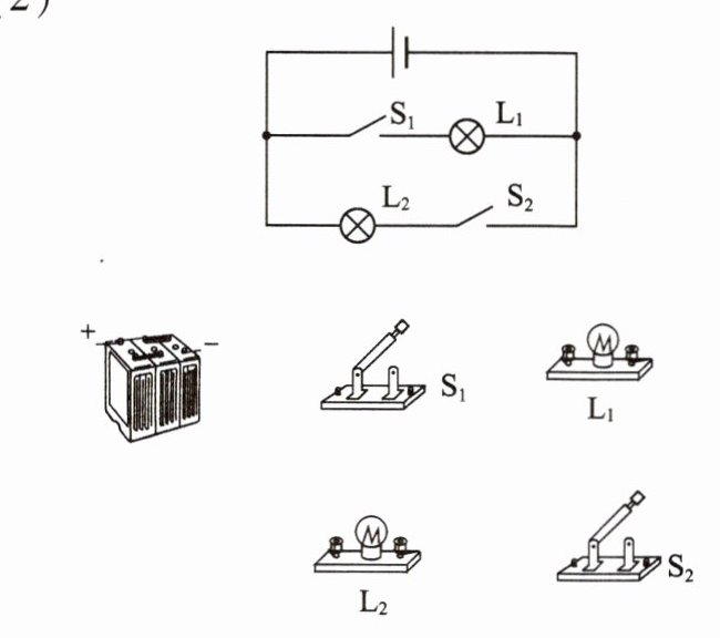 .(2) 教室内 $ 6 $ 盏相同的灯并联, 通过每盏灯的电流为 $ 0.2 \, A $, 则通过干路的电流为