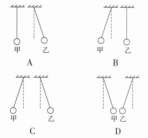 1. 用两根绝缘细线分别将甲、乙两个相同的轻质小球悬挂起来. 若两个小球都带正电,将乙球慢慢靠近甲球时,会出现的情形是图中的(