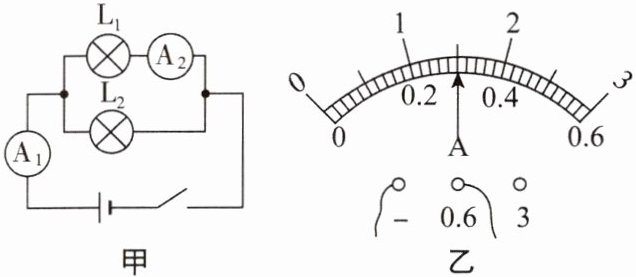 (1)由图乙可知,电流表A₂的量程为0~0.6 A,分度值为0.02 A,示数为0.3 A,则通过小灯泡L₁的电流I₁ = 0.3 A。