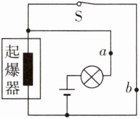 20. 如图是爆破专家设置的定时爆炸装置的原理图,起爆前定时开关是闭合的. 为使爆炸装置停止工作,应在______(选填“a”或“b”)处剪断导线. 拆除前,起爆器上______(选填“有”或“没有”)电流通过.