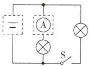 22. 在图中虚线框中填入电池和电流表的符号,使电路成为并联电路.