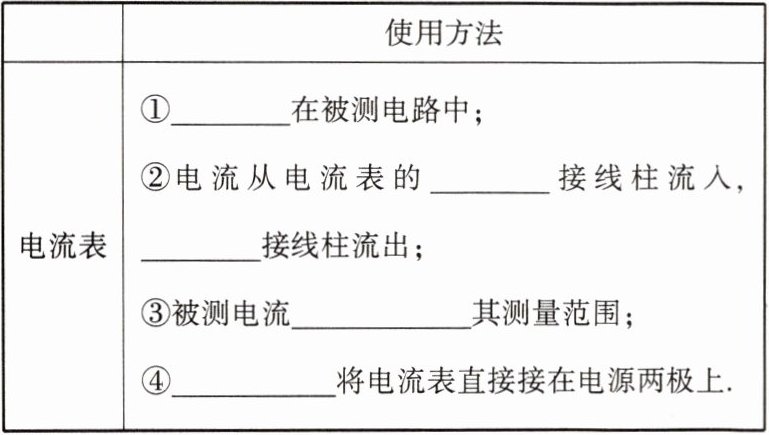 4. 请比较电压表和电流表的使用方法,填写表格。