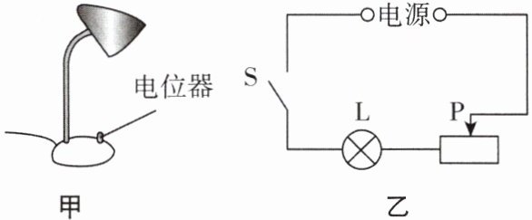 1. 图甲是亮度可调的台灯,其电位器的作用相当于滑动变阻器,简化电路如图乙所示. 若向右移动滑片 P,灯泡两端的电压将