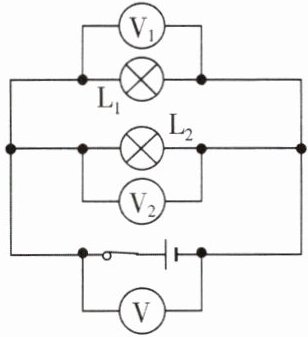 4. 如图所示,灯泡 $ L_1 $ 比 $ L_2 $ 亮,电压表 $ V_2 $ 示数为 6 V,下列说法正确的是(