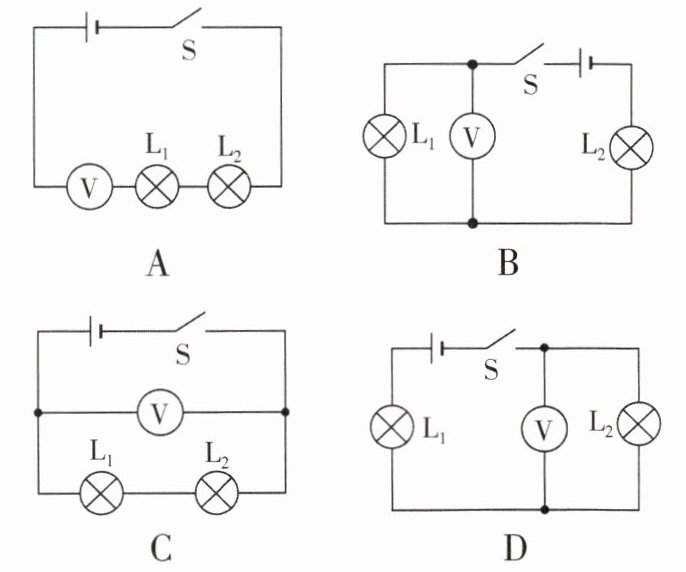 3. 下列各电路图中,电压表能测出灯 $ L_1 $ 两端电压的是(