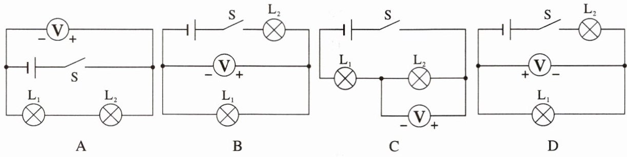 3. 下列电路图中,能用电压表正确测出灯 $ L_1 $ 两端电压的是(