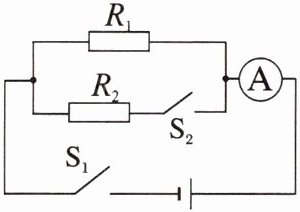 15. 如图所示,电阻 $ R_{1} $ 和 $ R_{2} $ 并联在电路中,$ R_{1} $ 的阻值为 36 Ω. 当开关 $ S_{1} $、$ S_{2} $ 都闭合时,电流表示数为 1 A;当 $ S_{1} $ 闭合、$ S_{2} $ 断开时,电流表示数为 0.25 A. 求电阻 $ R_{2} $ 的阻值及电源电压.