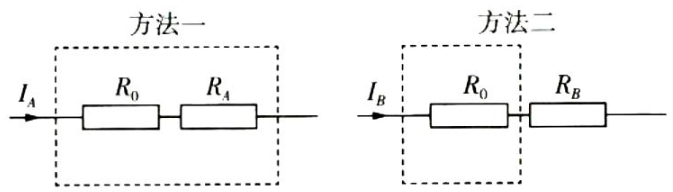 在方法一中电热箱的功率 $ P_{A箱} = I_{A}^{2}(R_{0} + R_{A}) $