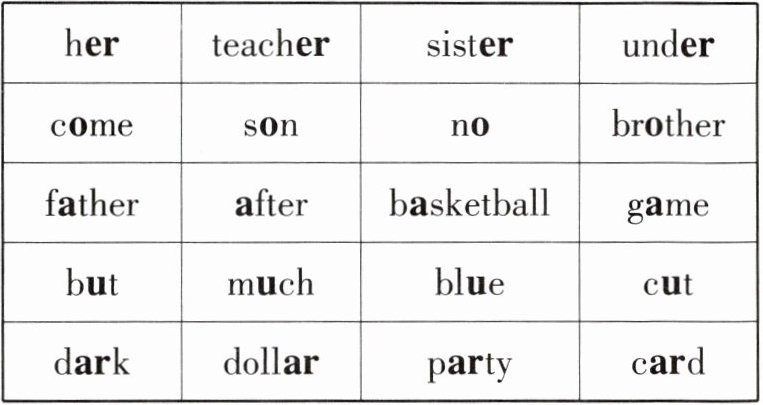 二、根据重读音节的规律,按照示例将方框中的单词正确归类。