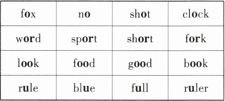 一、朗读下面的单词,在每一行中找出粗体部分读音不一样的单词,并将其圈出来。
