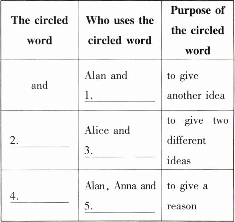 二、请你观察以上题中圈出的连词,帮李莉分析这些连词的作用,完成下面的表格。