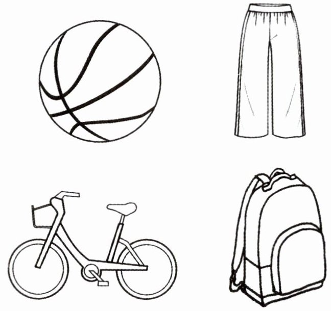 十、新学期开始了,你需要买以下物品。你喜欢什么颜色呢?请将下列物品涂上你喜欢的颜色,并写出表示该颜色的英文单词。