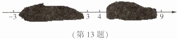 13. (★★) 写作业时,小明不慎将墨水滴在数轴上,根据图中的数值,判断墨迹盖住部分的整数共有【