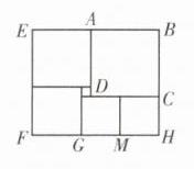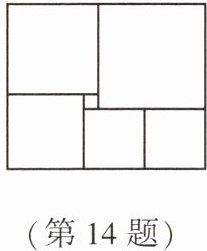 14. (★★★)如图是一块长方形色块图,由 6 个颜色不同的正方形组成,设中间最小的一个正方形边长为 1,则这个长方形色块的面积为多少?
