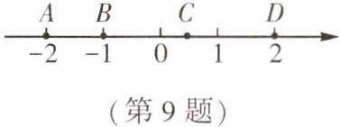 9. (★)如图,数轴上有A,B,C,D四个点,其中表示互为相反数的点是 【