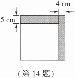 14. (★★)如图,小明将一个正方形纸片剪去一个宽为$4cm$的长条后,再从剩下的长方形纸片上剪去一个宽为$5cm$的长条,如果两次剪下的长条面积正好相等,那么每一个长条的面积为 【