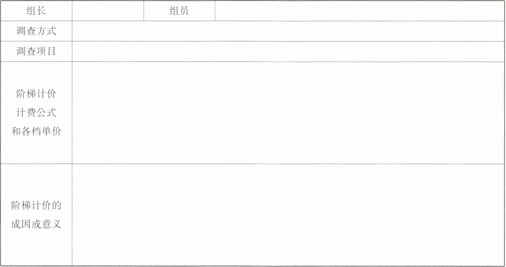 通过这次调查,我收获颇丰。首先,我学会了如何通过多种方式(网络查阅和实地走访)获取信息,提高了自己的实践能力和信息收集能力。其次,对阶梯计价方式有了更深入的理解,明白它不仅仅是一种收费方式,更是一种资源管理和社会公平的体现。在生活中,我们要珍惜资源,从自身做起节约用水、用电等。而且,将数学知识(一元一次方程)应用到实际生活问题中,让我感受到了数学的实用性和魅力,激发了我对数学学习的兴趣。同时,小组合作也让我学会了与他人沟通协作,共同完成任务,增强了团队意识。