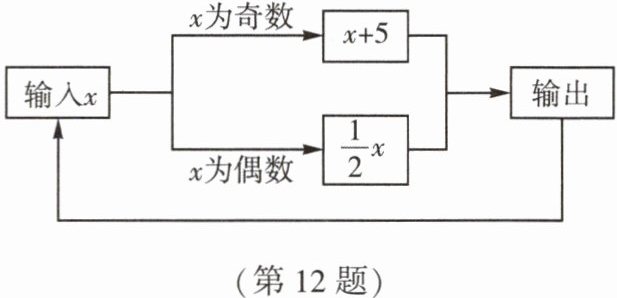 12. (★★★) 如图所示的运算程序中,若开始输入的 $ x $ 值为 $ 96 $,我们发现第 $ 1 $ 次输出的结果为 $ 48 $,第 $ 2 $ 次输出的结果为 $ 24 $,……,第 $ 2024 $ 次输出的结果为