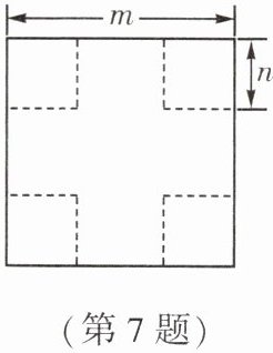 7. (★)某校开展了丰富多样的劳动实践课. 七年级(1)班在边长为 $ m $ m 的正方形空地的四角均留出一块边长为 $ n $ m 的正方形空地种植萝卜,其余的地方种植白菜.