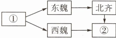 材料一 魏晋以来,内迁各族人民与当地汉人错居杂处,过着定居的生活。他们向汉族人民学习农业技艺,生产方式逐渐由原来的畜牧业转变为农业。汉族人民向北方各族人民学习畜牧经验,还接受他们的食物、服装、用具等。十六国北朝政权的统治者,沿袭中原地区原有的统治方式。北魏孝文帝改革后,汉语成为北方主要的通用语言。北方民族的乐器、歌舞等受到汉族人民的喜爱。